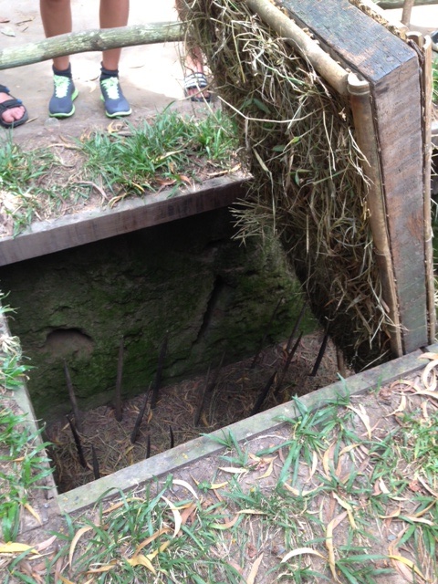 While we were in Phonsavan, we visited a Hmong village. I was nervous that it would be similar to the experience I had on Lake Titicaca, when I visited the island of the “native” people, all of whom seemed to present an artificial preservation of culture to please eager tourists. Thankfully, the Hmong village seemed untouched. Sara, our tour guide (Mr. Wong), and I walked around a small village, complete with cows, a monkey, wooden buildings with thatched roofs, and pigeon coops supported by bomb shells. The surreptitious presence of bomb shells, as building supports and flower “boxes,” was disturbing.