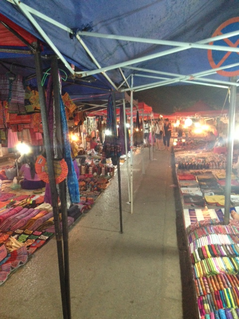 Luang Prabang is home to a fantastic labyrinth of a night market, complete with covered street food vendors and Laotians selling baggy pants, art scrolls, and coffee, among a sea of other things. When we were shopping, dripping sweat underneath red and blue awnings, haggling with every vendor we encountered, it was hard to maintain any sense of direction. This likely contributed to me buying altogether too many gifts.