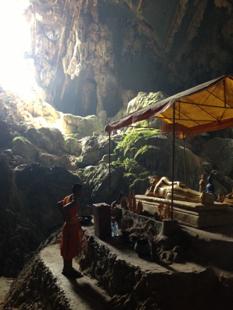 Southeast Asia, and Laos in particular, has challenged the relationship I have with my stomach. As per usual, I want to eat everything. Street vendors rarely disappoint. Cumin, chile, coriander, onion, coconut – the medley of flavors and aromas, walking down nearly every street, is intoxicating. Unfortunately, I had my first bout of real sickness in Luang Prabang. As is healthy for any set of travelers, this provided Sara and me the opportunity to spend some time alone. While my beautiful, adventurous friend explored waterfalls, I huddled under a mosquito net in our room, attempting to stomach both the food from the day prior and a strange Japanese novel I was reading, called South of the Border, West of the Sun. I didn’t realize that the protagonist, a middle-aged Japanese man suffering a mid-life crisis, is entirely self-involved until the end of the novel. I suppose one of the themes, in addition to the tendency of people to constantly live in fear of the “what if,” is the essential egotism of humans. The book was powerful and disturbing. But I was thankful that it took my mind away from the delicious and potentially disastrous foods surrounding me.